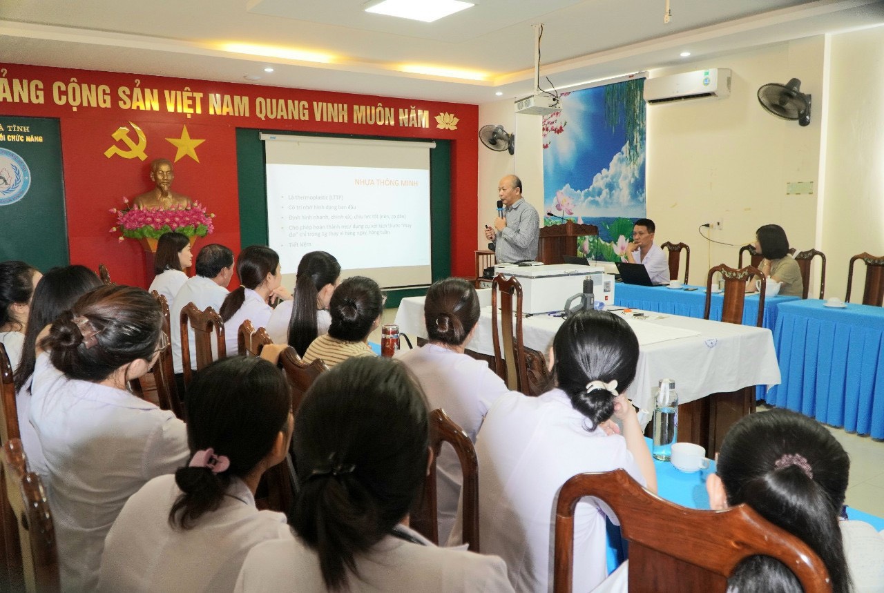 Mới đây, Công ty TNHH Thiết bị Vật tư Y tế và Dịch vụ kỹ thuật AD đã phối hợp với Bệnh viện Phục hồi chức năng tỉnh Hà Tĩnh tổ chức hội tháo “Ứng dụng nhựa thông minh trong điều trị phục hồi chức năng”, với sự tham gia của hơn 50 bác sĩ, kỹ thuật viên, điều dưỡng của bệnh viện và các trung tâm y tế tuyến huyện trên địa bàn Hà Tĩnh.